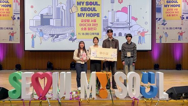 상명대는 본교 학생들로 구성된 '투게더인서울'팀이 지난 18일 서울시가 개최한 '글로벌 서울 아이디어 제안 숏폼 챌린지' 공모전에서 우수상을 수상했다고 21일 밝혔다.