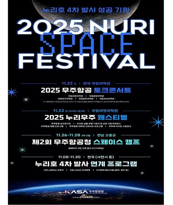우주항공청이 누리호 4차 발사 성공을 기원해 '우주항공 토크콘서트'를 전국 5개 국립과학관에서 열고, 누리우주페스티벌을 국립과천과학관에서 개최해 미니 로켓 제작·발사와 AR 누리호 체험 부스를 운영한다.