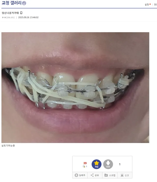 정보 : 치아교정 고무줄은 밥먹을때마다 직접 뺐다가 다시 달아야한다.