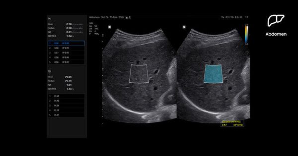 특히, R20은 간 지방 정량 측정 AI 기반 기능을 통해 정밀한 진단을 가능하게 한다. 티에이아이 (TAI·Tissue Attenuation Imaging)는 초음파 신호를 간세포 내 지방에 의해 약해지는 정도를 측정해 실시간으로 지방간 변화를 평가한다. 티에스아이 (TSI·Tissue Scatter distribution Imaging)는 조직 산란 분포를 정량적으로 측정해 지방간 진행 상황을 모니터링한다.