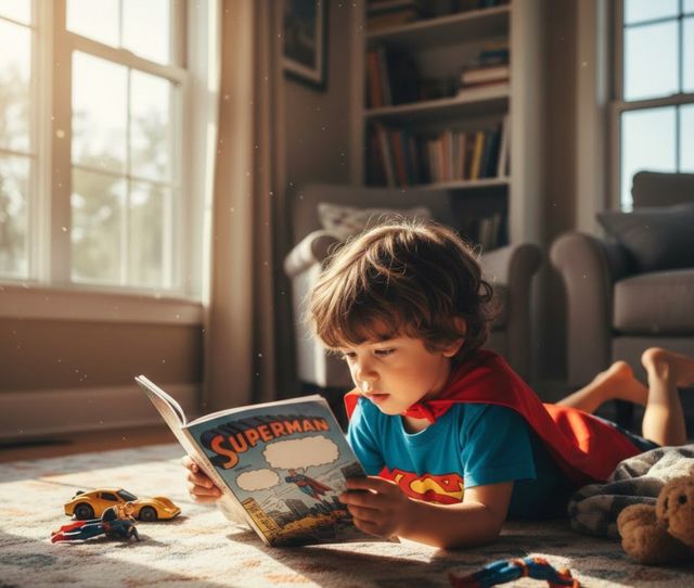 '슈퍼맨' 만화책을 보는 아이. 기사 내용을 바탕으로 AI가 생성한 자료사진.