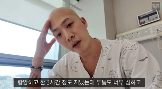 차현승은 “항암하고 한 2시간 정도 지났는데 두통도 너무 심하고 울렁거림도 심해서 진통제를 받아서 먹었다”며 괴로움을 드러냈다.