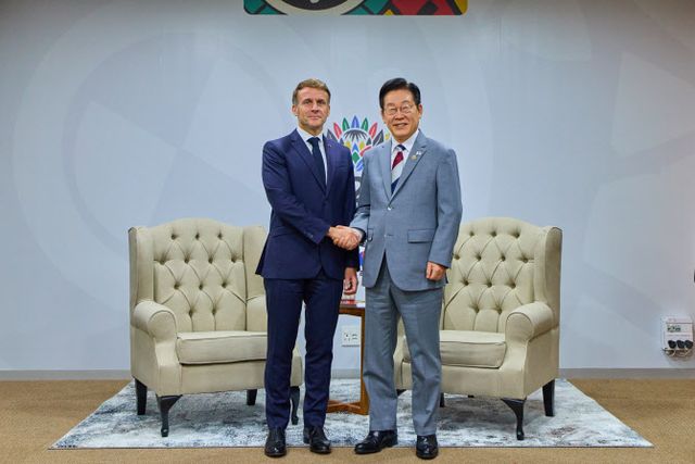 마크롱 대통령은 “내년 수교 140주년을 계기로 고위급 교류를 활성화해 양국의 협력 잠재력을 구체적으로 실현하길 기대한다”고 화답했다. 그는 국방·우주·원전·핵심광물·AI·퀀텀컴퓨팅 등 분야에서의 양자 협력 강화를 강조하면서 “한국이 글로벌 현안에서 다양한 기여를 하고 있는 만큼, 내년 G7 의장국을 맡는 프랑스와 긴밀히 협력해 나가자”고 말했다.