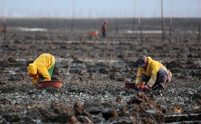 싱싱한 자연산 굴 수확하는 어민들 / 전남 강진군 제공, 뉴스1