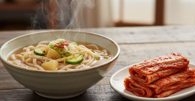 칼국수에 들어가는 채소도 간단하게 구성하는 것이 좋다. 양파 반 개와 애호박 한 토막만 손질해 넣으면 달큰한 맛이 자연스럽게 우러나 온 가족이 부담 없이 즐길 수 있다. 특히 김장김치와 먹을 때는 배추김치 국물의 감칠맛을 고려해 칼국수 자체의 양념은 최소화하는 편이 훨씬 조화롭다. 간은 소금이나 액젓으로 가볍게 맞추고, 마늘은 다진 마늘 반 스푼만 넣어도 충분하다.