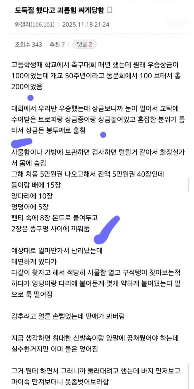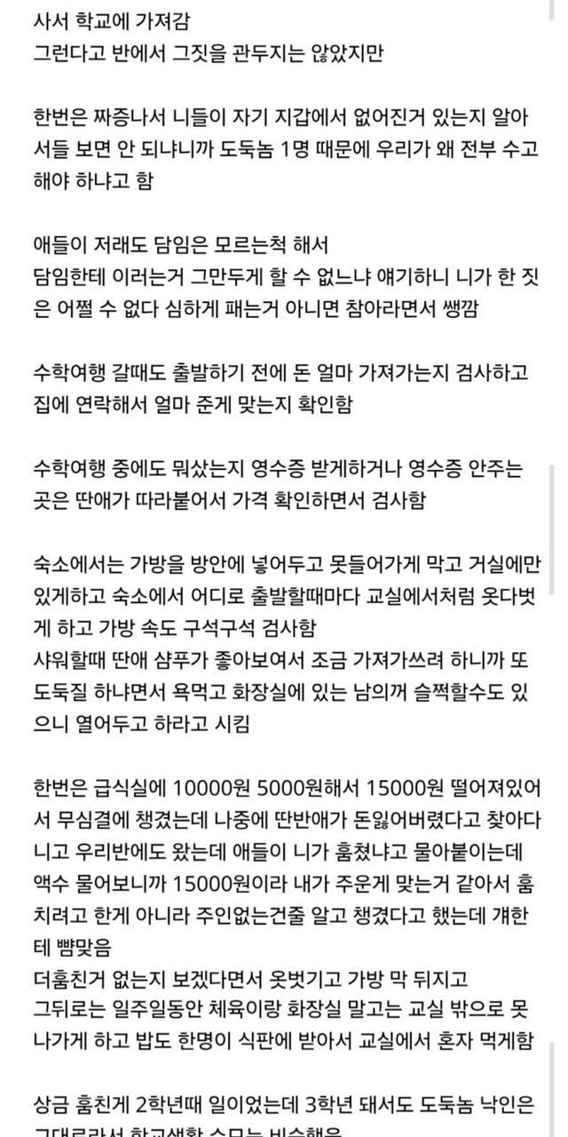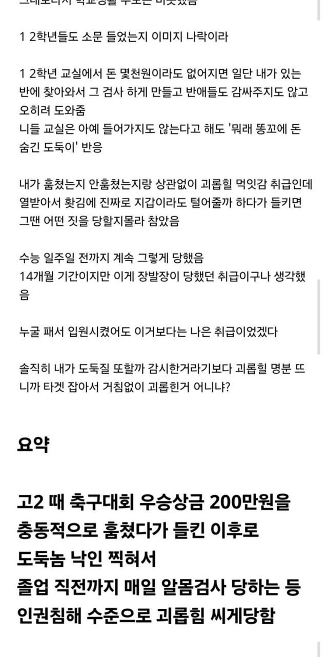 고딩 때 도둑질 했다고 심하게 학폭 당했음