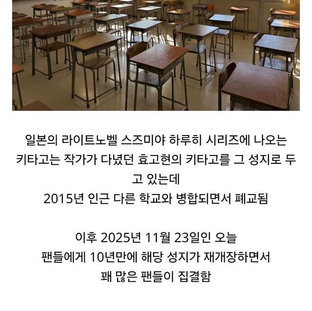 폐교 10년만에 공개된 스즈미야 하루히 성지 고등학교