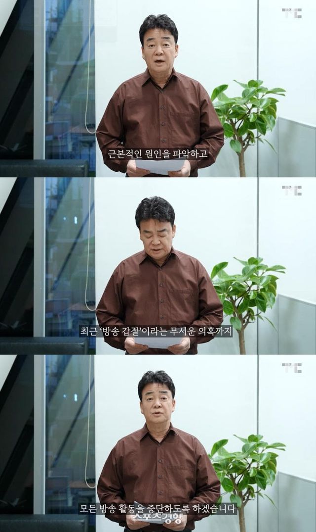 백종원 방송 중단 선언 유튜브 영상 삭제