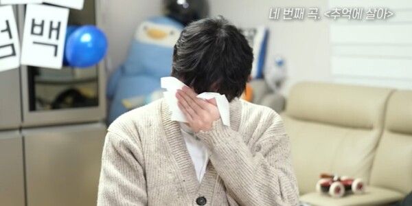 하지만 규현이 새 EP의 수록곡을 들려주는 순간, 분위기는 예상치 못하게 바뀌었다. 네 번째 트랙 ‘추억에 살아’가 흘러나오자 성시경은 깊은 한숨을 내쉰 뒤 결국 안경을 벗고 눈물을 훔쳤다. 성시경이 방송에서 눈물을 흘리는 모습, 특히 안경을 벗고 우는 모습은 데뷔 후 거의 처음이라 규현 역시 놀란 표정을 감추지 못했다.