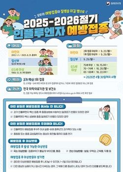 대상은 어린이(생후 6개월~13세), 임신부, 65세 이상 어르신(1960년 12월 31일 이전 출생자)이며, 내년 4월 30일까지 전국 위탁의료기관 및 보건소에서 무료로 접종받을 수 있다.