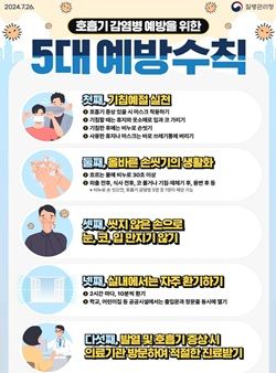 또한 “"회사 등에서도 아프면 쉴 수 있도록 배려하는 문화를 조성해달라”며 “호흡기 증상이 있는 경우 조기 치료를 위해 신속하게 의료기관을 방문해 진료를 받을 것”을 강조했다.