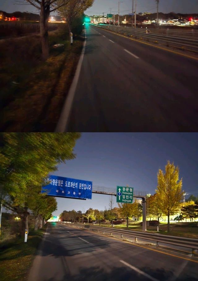 1번 국도로 다시 가서 걸었는데 민통선 근처 지역이라서 그런지는 모르겠지만 가로등조차 없어서 ㄹㅇ 깜깜했음. 인도조차 없어서 조금 위험했지만 다니는 차는 많이 없었음.