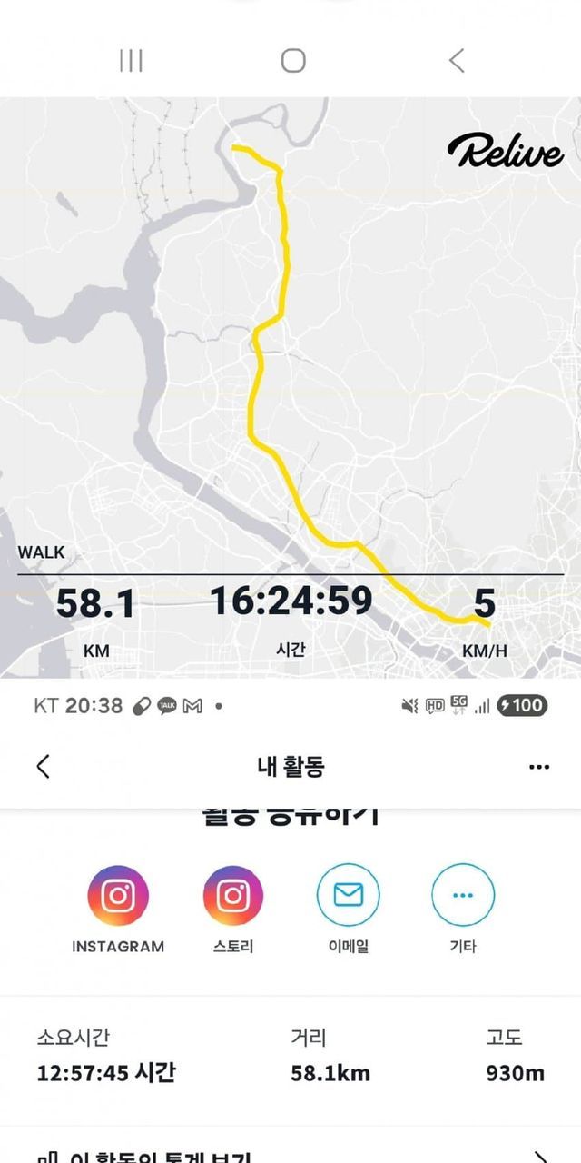 20km를 걸은 시점에서 슬슬 다리가 아파와가지고 곡산역까지는 좀 천천히갔었음.