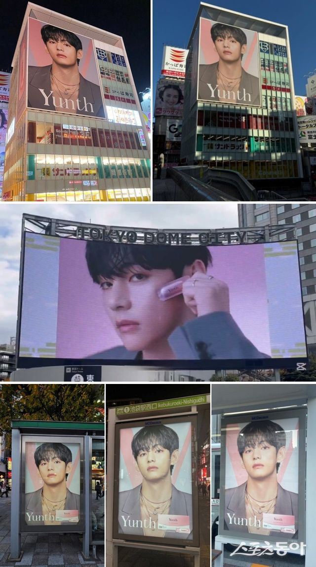 도쿄의 버스 정류장, 도쿄 돔 시티의 대형 LED 비전, 오사카 도톤보리의 빌딩 외벽까지 뷔의 이미지를 활용한 광고가 연이어 송출되고 있다. 팬들은 “이쯤 되면 일본 겨울 광고판은 뷔가 접수했다”, “관광 명소마다 뷔 찾기 한다” 등의 반응을 남기며 열기를 더했다.