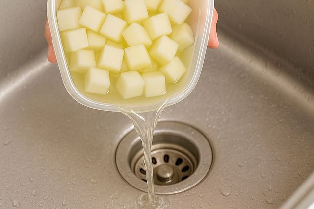 치킨무 속 액체를 싱크대 배수구에 버리는 모습. 기사 이해를 돕기 위해 AI를 활용해 제작한 자료 이미지입니다. 실제 모습과 다소 차이가 있을 수 있습니다.
