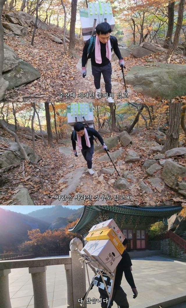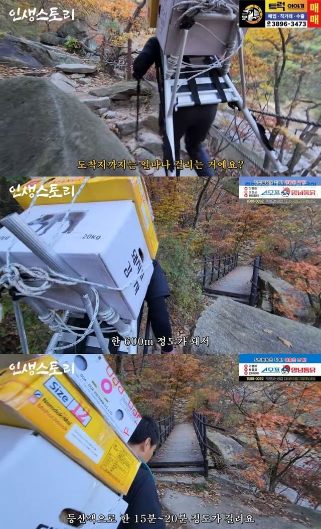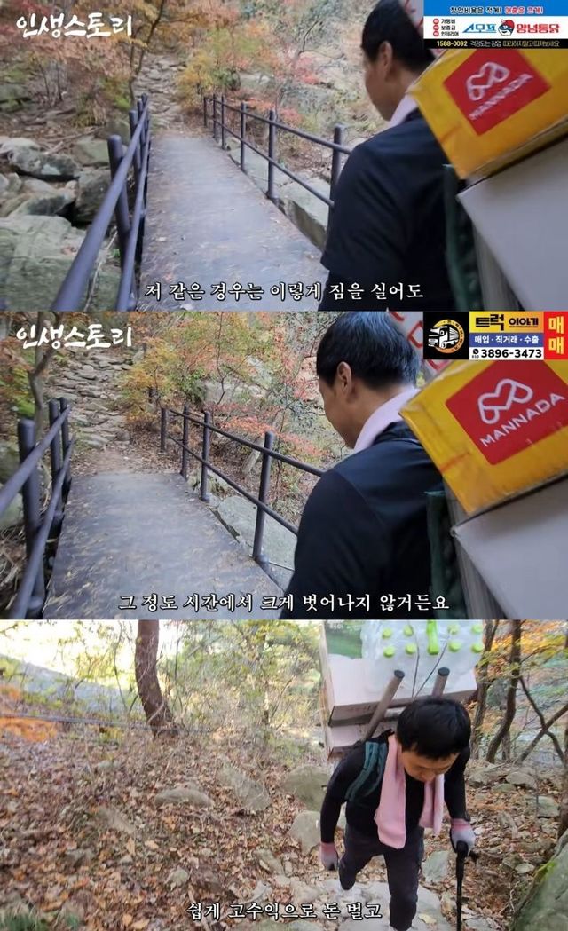 하루에 3~4번 40~50kg 되는 짐을 짊어지고 절까지 왕복한다고함