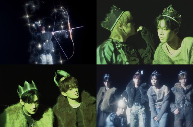 이번에 공개된 뮤직비디오 1차 티저는 이번 싱글 앨범의 타이틀곡이자 긴장감을 유발하는 ‘RED (Beggin’)’의 인트로 파트와 함께 암흑 속 활시위를 하늘 높이 당기는 멤버 강민의 모습으로 시작됐다. 별자리 오리온을 연상시키는 신비로운 빛을 강민이 활시위에 담아 당기면 고대 왕관 장식을 쓴 베리베리(VERIVERY)의 모습으로 이어졌다.
