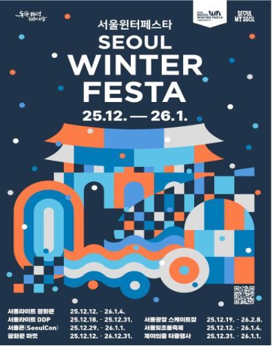 서울시는 12월 12일(금)부터 2026년 1월 4일(일)까지 24일간, 광화문광장~청계천~서울광장~DDP~보신각~우이천 6곳을 잇는 초대형 겨울축제 <2025 서울윈터페스타>를 개최한다고 밝혔다.