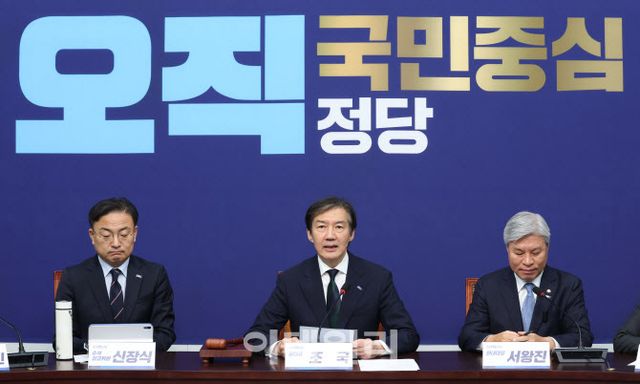 조 대표는 24일 서울 여의도 국회에서 열린 당 최고위원회에서 “조국혁신당 제1막은 윤석열 검찰 독재정권 해체를 향한 투쟁의 깃발을 드는 기간이었다. 조국혁신당 제2막은 내란을 완전히 종식하고 제7공화국의 문을 여는 신세기가 될 것”이라고 “저는 조국혁신당 제2막의 성공을 확신한다”고 했다. 이날 최고위는 전날 조 대표가 혁신당 당 대표에 복귀한 후 주재하는 첫 회의다. 혁신당 초대 대표였던 조 대표는 전날 혁신당 전당대회에서 득표율 98.6%로 다시 당 대표를 맡게 됐다.