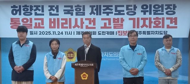 [한라일보] 진보당 제주도당은 허향진 전 국민의힘 제주도당 위원장이 통일교 대선 개입과 관련해 경찰에 고발했다.