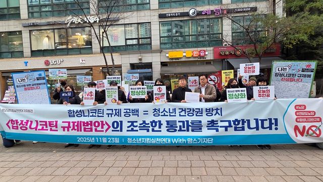청소년지킴실천연대는 법사위 전원에게도 지금 이 순간에도 규제 공백 속에서 청소년 피해는 계속되고 있다"라며 "아이들의 안전과 미래를 지키기 위해 26일 법사위 전체회의에서 합성니코틴 규제 법안이 반드시 통과될 수 있도록 책임 있는 결정을 내려달라. 여러분의 판단 하나하나가 대한민국 청소년의 삶을 지키는 중요한 책임이 될 것이다"라고 강조했다.