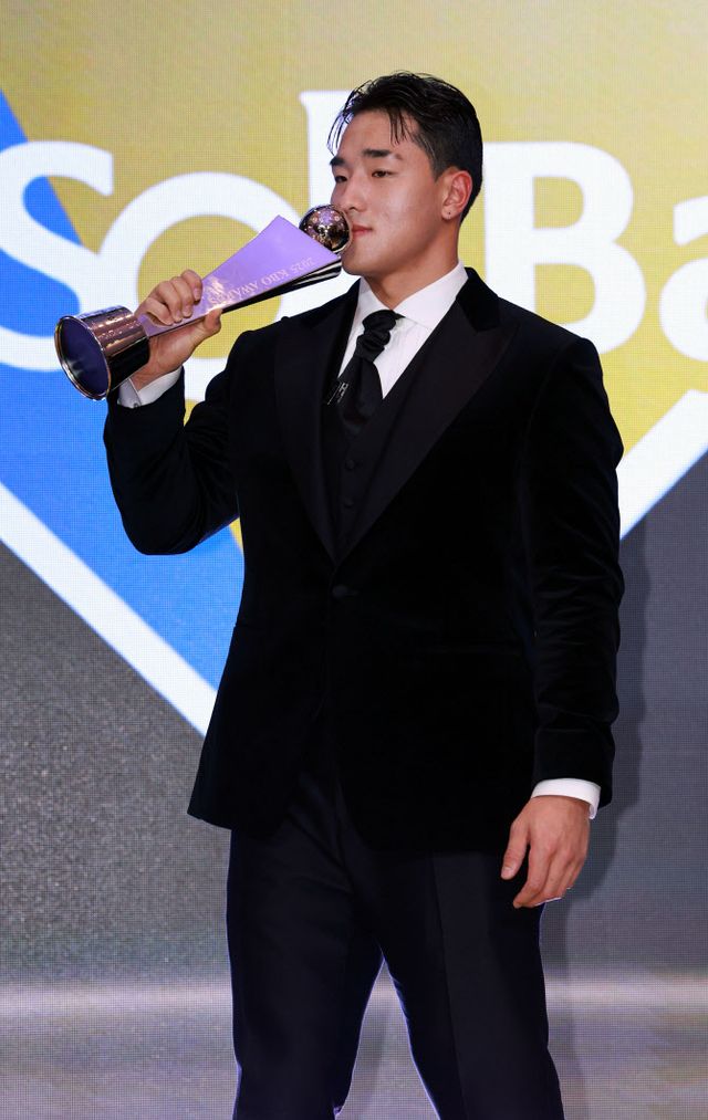 안현민은 24일 서울 송파구 롯데호텔 월드에서 열린 시상식에서 총 125표 중 110표(88%)를 획득하며 경쟁자들을 압도했다. 정우주(한화), 성영탁(KIA), 송승기(LG) 등이 경쟁자로 나섰지만, 안현민의 상대가 되지 못했다.