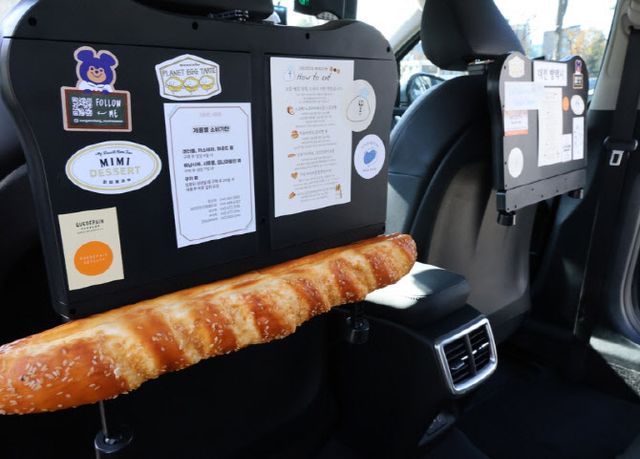 택시 내부에는 이동하며 빵을 먹을 수 있도록 비행기와 기차에 있는 접이식 테이블이 설치돼 있다. 전체 투어 요금은 2시간에 3만 원이다.