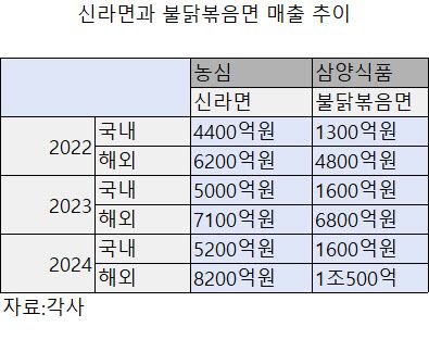 업계 관계자는 “농심과 삼양식품이 K라면 선두 자리를 놓고 경쟁하고 있다”면서 “신흥 강자 불닭볶음면과 전통 강자 신라면 중 누가 우위에 설지 관심이 모인다”고 말했다.