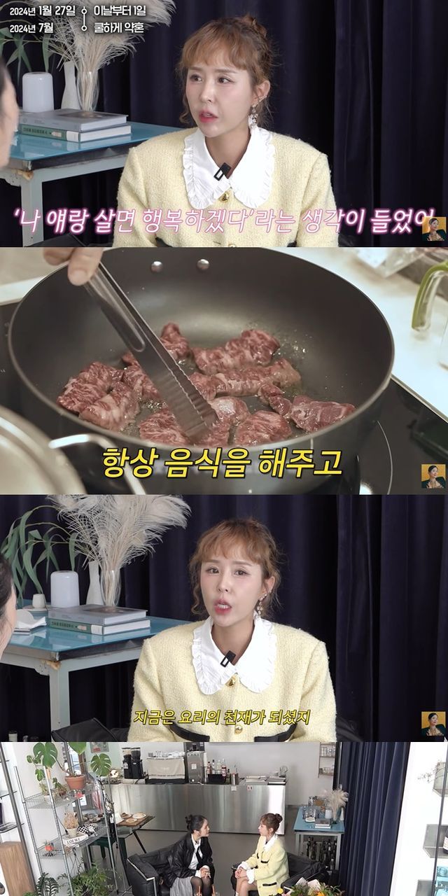 신지는 "'나 얘랑 살면 행복하겠다'라는 생각이 들었다. 내 건강을 챙겨주고 싶어서 음식을 한 번도 해보지 않았던 친구가 유튜브를 보면서 항상 음식을 해주고, 지금은 요리 천재가 됐다"며 문원을 자랑했다.