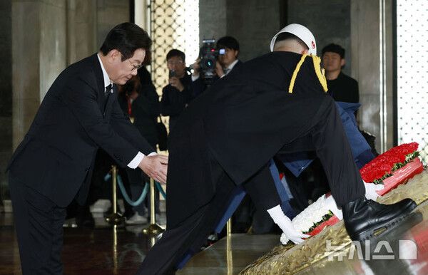 이재명 대통령이 24일(현지시간) 튀르키예 국부(國父)로 불리는 무스타파 케말 아타튀르크 초대 대통령 묘소 방문을 시작으로 튀르키예 국빈 방문 일정을 시작했다.