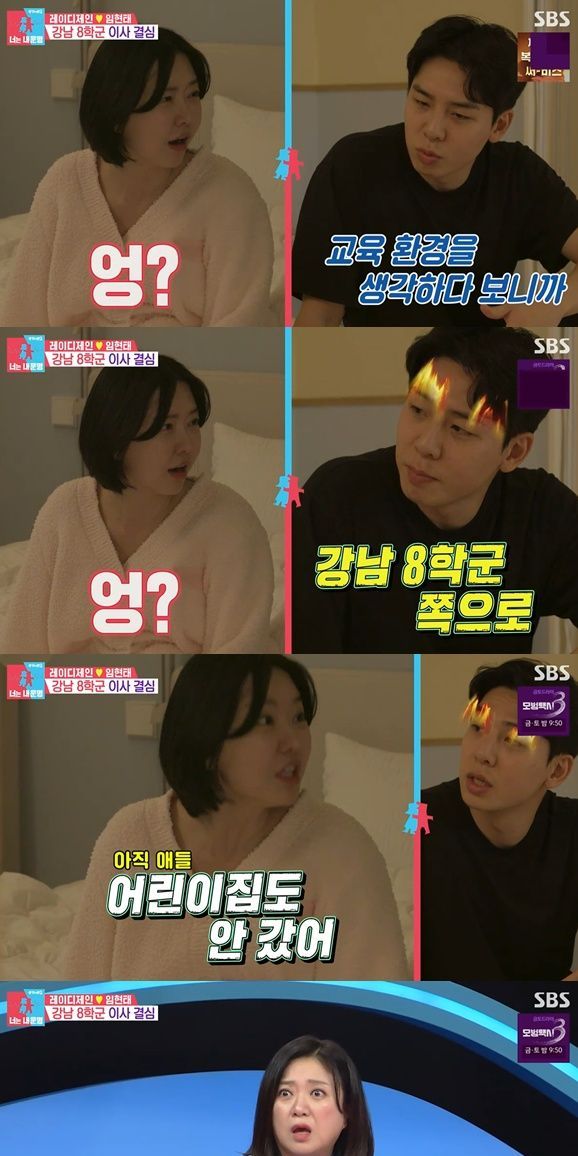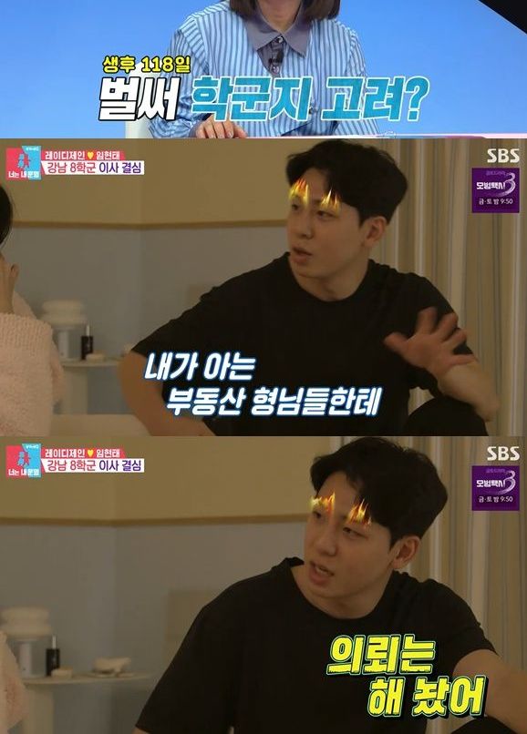 이에 레이디제인은 "벌써? 아직 애들 어린이집도 안 갔다"며 당황했고, 임현태는 "내가 아는 부동산 형님들한테 의뢰는 해 놨다 집안에 판검사는 나오면 좋지 않을까"라고 학구열을 드러냈다.
