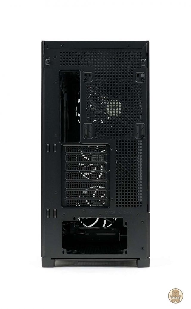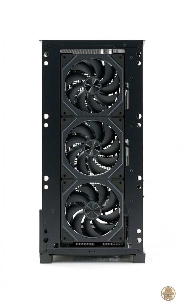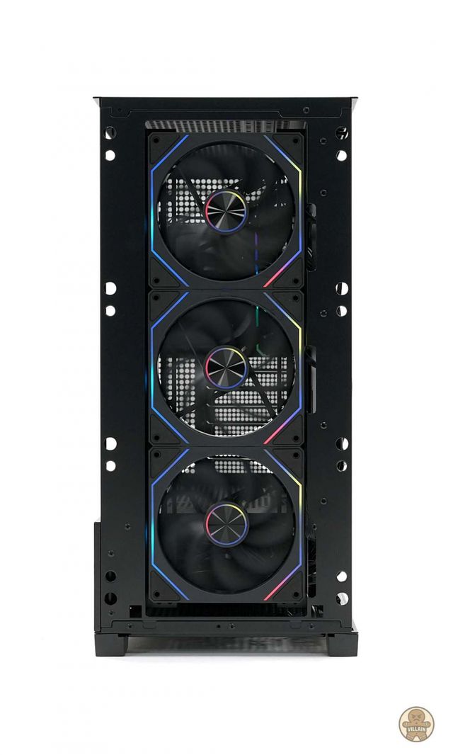 후면에는 전면과 동일한 H9 140mm ARGB 쿨링팬이 추가로 탑재되어 총 4개의 기본 팬 구성이 제공된다. 수냉쿨러를 사용한다면 별도 팬 추가 없이도 충분한 에어플로우가 확보되지만, 파워 챔버 상단에 120mm 또는 140mm 팬을 두 개까지 장착해 냉각 성능을 더욱 강화할 수도 있다. 고성능 시스템을 구축하거나 ARGB 연출을 확장하려는 사용자에게 유연한 확장성을 제공하는 셈이다.