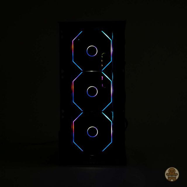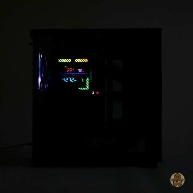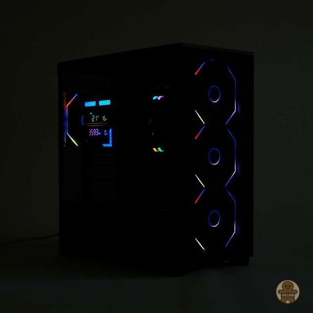 전면에 장착된 H9 140 ARGB 인피니티 미러 팬은 측면과 정면 모두에서 깔끔하고 깊이감 있는 조명 효과를 제공한다. 특히 테두리와 블레이드 중심부에서 선형으로 퍼지는 ARGB 광원은 과장되지 않은 절제미를 유지하면서도, 기존 파노라믹 뷰 스타일에서 느끼기 어려웠던 고급스러운 조형미를 완성한다.