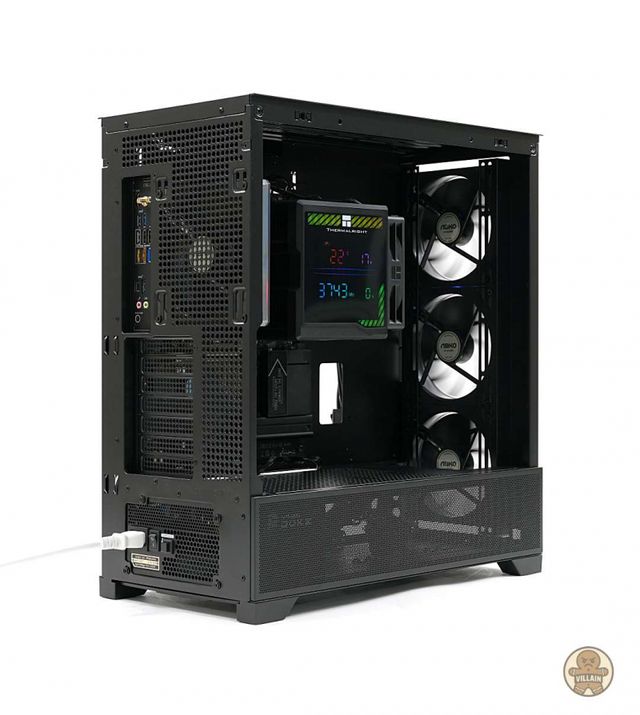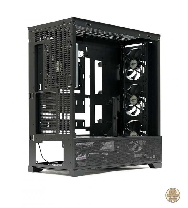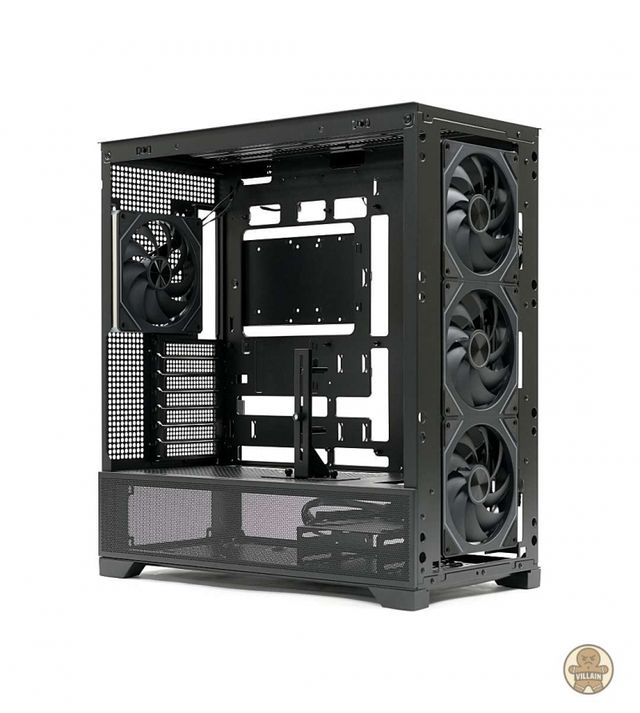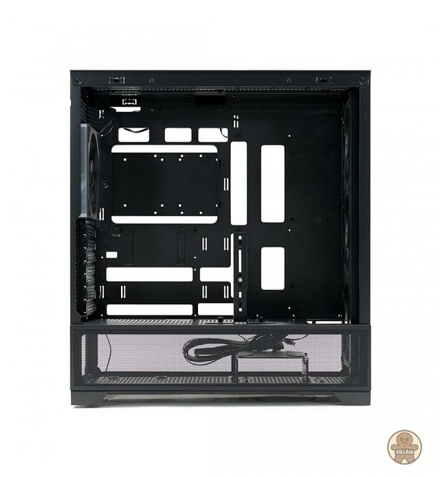 파워 챔버 측면 역시 요란한 디자인을 배제하고 전체를 메쉬로 구성해 공기 유입량을 극대화했다. 내부 파워 챔버 상단에도 쿨링팬을 추가 장착할 수 있어 안정적인 공기 흐름을 위한 전용 채널을 형성한다. 우측 패널 또한 해당 부위를 전체적으로 에어홀 처리해, 전체 시스템의 에어플로우 성능을 더욱 끌어올렸다.