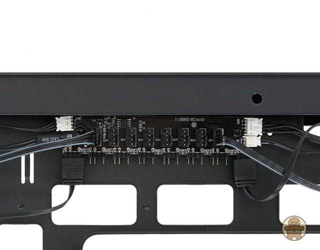 상단에는 최대 8개의 ARGB 팬을 통합 제어할 수 있는 팬 허브가 제공된다. 메인보드 상단에 팬 헤더가 집중된 구조와 자연스럽게 연결되어 PWM 및 ARGB 제어가 간편하며, 팬의 속도·조명·전력 공급을 한 곳에서 관리할 수 있어 유지관리 효율성이 매우 높다.
