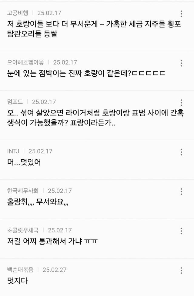 당시 조선 산자락에 호랑이는 수백마리 무리지어 뭉쳐서 뒹굴거릴정도로 많았다라고 주장하는 어그로를 거름 없이 받아들이는 새끼들이 딱 여기에 있음