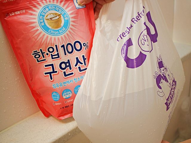 물을 틀어서 5분정도 흘려보내면 구연산수가 완전히 빠져서
