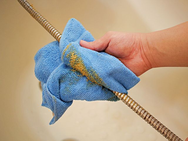 샤워기줄을 꼼꼼하게 닦아주세요.