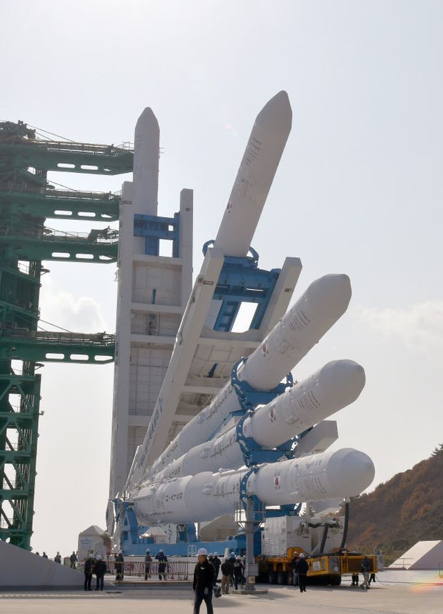 누리호는 이날 오전 9시부터 무인 특수이동 차량(트랜스포터)에 실려 나로우주센터 내 발사체 종합조립동에서 제2발사대까지 이송됐다. 이후 누리호는 기립 준비 과정을 거쳐 발사대에 고정됐다.