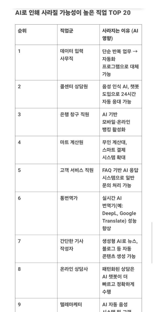 AI 로 인해 사라질 직업과 유망할 직업들 모음