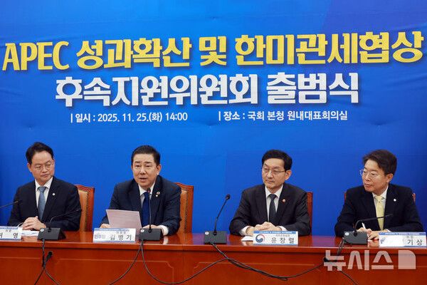 더불어민주당이 25일 APEC 정상회의 및 한미 관세협상 후속 지원 위원회를 발족했다. 김병기 원내대표가 이번 주 내로 대미투자특별법을 직접 발의할 예정이다.