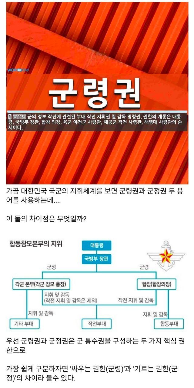대한민국 국군 지휘체계 군령권과 군정권의 차이점