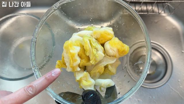 해동된 배추잎. / 유튜브 '집나간아들 Runaway Son'