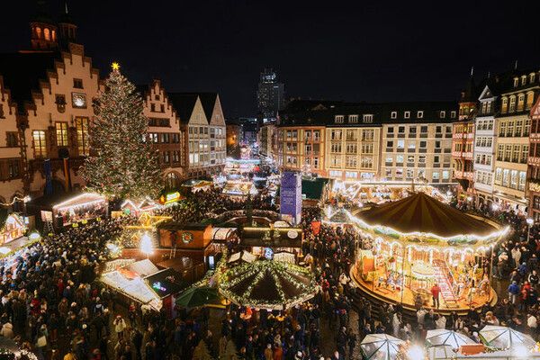 [서울=뉴시스] 24일(현지 시간) 독일 프랑크푸르트에서 전통 크리스마스 마켓이 개장해 각종 조명이 밝게 빛나고 있다.