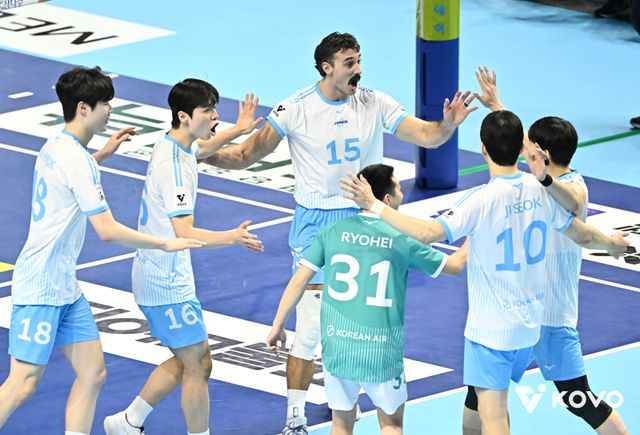 대한항공이 KB손해보험을 꺾고 1위를 지켰다.