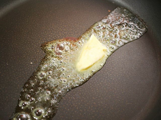 약불에서 예열한 팬에 버터 한큰술을 녹여주세요.