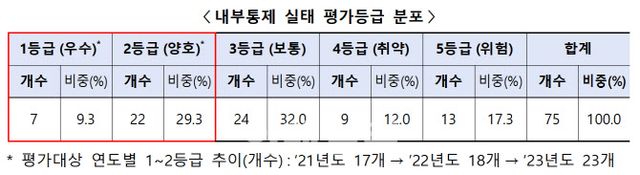 금융감독원은 26일 75개 대형 GA를 대상으로 실시한 ‘2024년도 내부통제 실태 평가’ 결과 평균 등급이 3등급(보통)으로 집계됐다고 밝혔다. 금감원은 2022년부터 대형 GA의 자율적 내부통제 강화를 유도하기 위해 내부통제 실태 평가를 운영해 왔고, 올해부터는 시범평가를 거쳐 전년도 실태를 본격적으로 평가했다.
