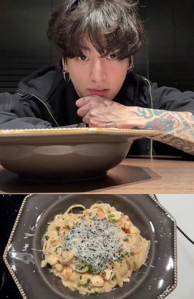 끓는 물에 소금을 넣고 삶은 링귀네 면을 팬에 투하한 정국은 치즈를 갈아 넣고 “맛있어! 훌륭해!”라며 고개를 연달아 끄덕였다. 이어 만테까레로 마무리하여 ‘성게알 간장 크림 새우 파스타’를 완성했다. 플레이팅 후 간 치즈와 쪽파를 듬뿍 올리자 화면을 보는 팬들까지 자동으로 군침이 도는 비주얼이 펼쳐졌다.