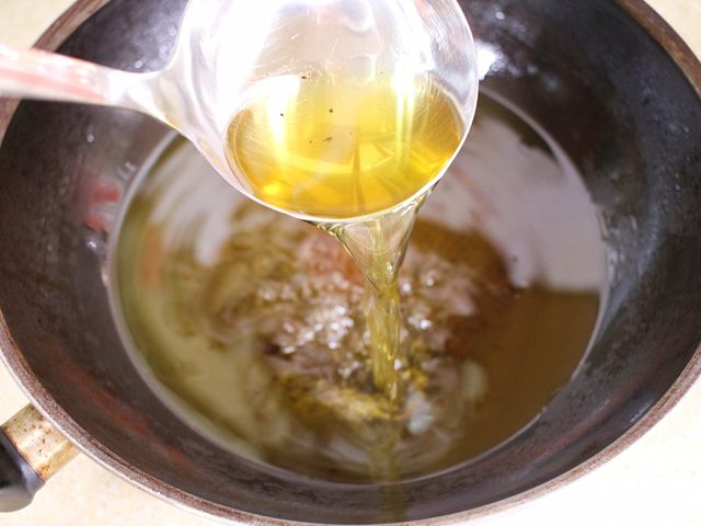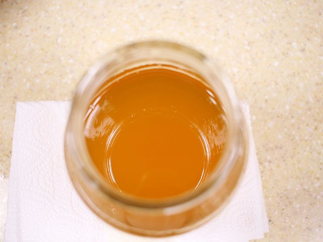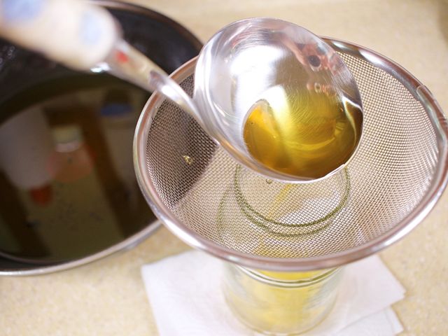 더 깔끔한 상태의 기름만 병에 담아주세요.