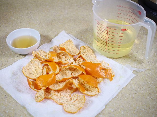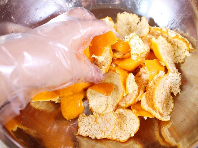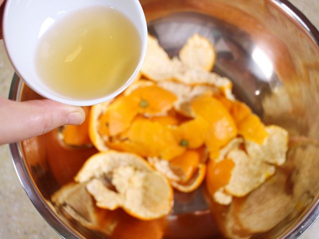 식초가 귤껍질에 잘 스며들도록 하는 과정이에요.